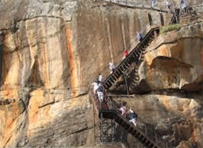 The steps constructed in late years to facilitate visitors who climb up to the top of the rock. You will find painting on the way. Also we find a perfectly polished levelled surface in the middle where you will find some poems written in an ancient language which have been translated to Sri Lankan language later on.