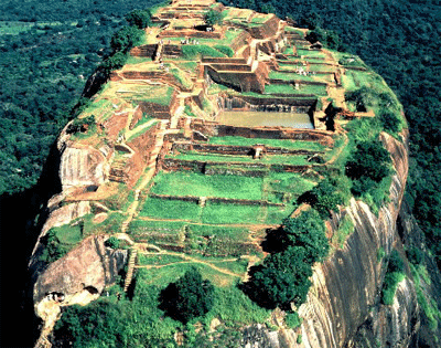 A birds eye view of the top of the rock where you can see the ruins of the palace of King Kasyapa. Ponds on top get the rain water collected and will release through special water supply system to the front garden which could made some fountains active.
